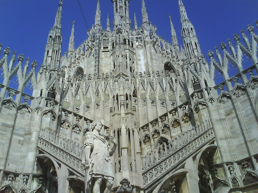 Nepregledno mnoštvo filigranskih ukrasa, stubova i koloneta, galerija i statua, krasi belu mermernu raskoš Milanske katedrale, koja posle crkve Sv.Petra u Rimu najveća crkva na svetu.